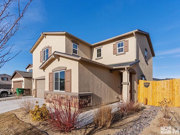 Welcome to this newer spacious Lemmon Valley home that has so much to offer. On the main level is a large open kitchen with medium tone cabinets for ample storage, granite countertops, stainless steel appliances, and a pantry. A front flex room that can act as an office or gym, a guest 1/2 bath, and extra storage under the staircase to maximize every inch of this home. Upstairs there is a second flex space to lounge or read, a laundry room, a walk-in supersized linen closet, and a guest bath., The main bedroom allows natural light and is large enough to accommodate a king size bed with nightstands and dressers. There is a main bathroom with double sinks, a large walk in shower stall, separate water closet and a walk in closet. Two other bedrooms are good sized bedrooms with closets. The two car garage has added storage rack and a tankless water heater. Relax and BBQ on the extended patio with a walkway that continues to the front. Raised garden beds. Includes the wash/dryer and refrigerator.