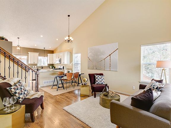 This adorable, updated, well-cared for home is move-in ready! The main level features vaulted ceilings, dark-stained hardwood flooring throughout, open staircase, gorgeous rod-iron balusters, AND a completely remodeled, gourmet kitchen. No expense spared here...with designer cabinetry (full overlay, crown molding, wood dove-tailed drawers with soft close, and built-in wine niche too), slab granite, spacious pantry, upgraded stainless appliances, gas stove, and single basin undermount sink. Upper level boasts 2 spacious bedrooms (one has a built-in closet organizer, brand new carpet in both), and a full bath. Lower level has a large family/media area w/ gas fireplace, 3rd bedroom, and full bath. The basement is unfinished with plenty of storage, laundry area (washer and dryer included), two egress windows and crawl space...the possibilities are endless to create a unique space. Situated on a large lot with welcoming front patio, large backyard patio space with newer pergola. Newer roof!