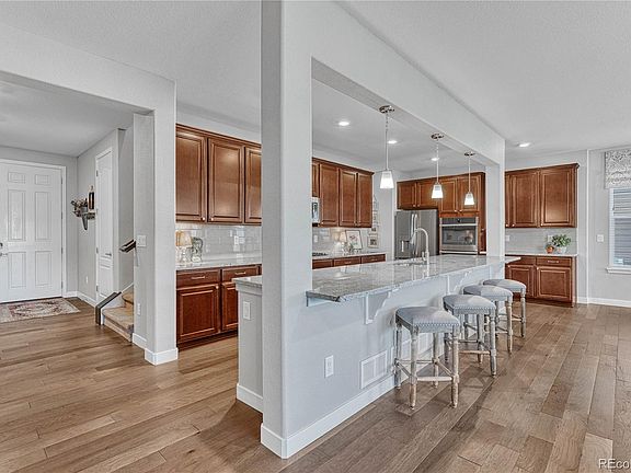 Fantastic opportunity for upscale multigenerational living or income generating residence in sought after INSPIRATION neighborhood which offers stunning mountain views, beautiful parks, miles of trails, tennis courts/sand volleyball & community pool. This beautiful mountain modern style "Superhome" offers a 5 bedroom/4 bath main house plus an attached 2 bedroom/1 bath "casita", which opens doors to a multitude of possibilities. The modern kitchen is a chef's dream with classic wood cabinets, contrasting granite counter tops, a 5 burner gas cooktop, double ovens & walk in pantry. The "wow" factor is the enormous center island that seats 6 & provides true open concept living. The adjacent family room is flooded with natural light & showcases a cozy corner fireplace creating a warm and inviting atmosphere. Upstairs you will find a private primary suite with sitting area and a luxurious en suite bath that features dual sinks, a walk in shower & abundant closet. There are 4 additional bedrooms upstairs including a guest suite with private attached bath plus another secondary bath with dual sinks. But, it doesn't end there...there is also a spacious loft living room that would make a great playroom/home theater/gaming area & a convenient upstairs laundry room with lots of built in storage & utility sink. Outside there is a fabulous covered deck that extends the entire back of the home & overlooks the meticulously manicured lawn creating a perfect spot to sit out & enjoy the beautiful Colorado sunsets! And, if that is not enough, the attached "casita" is a game changer offering a potential in-law apartment, a lock-off rental unit or a fantastic home based business opportunity. Complete with its own entrance & attached 1 car garage, this super cute apartment offers 2 bedrooms, jack n jill bath, second laundry room, a partial kitchen (appliances included), dining/living room & access to back deck. Finally, there's a full unfinished garden level basement to make your own.