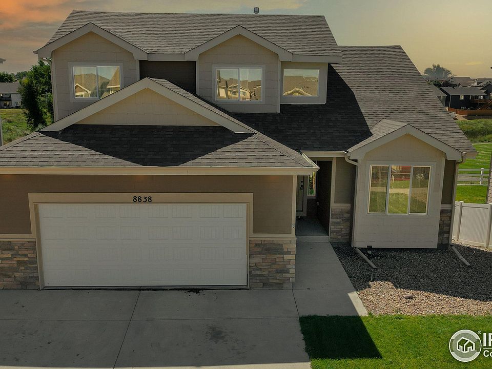 Newer home in West Greeley backs to open space, walking trail and park! Open floor plan with 10ft ceilings, kitchen has breakfast bar and opens to the dining room and both the living room & great room. Main floor master bdrm (3/4 bath), laundry room and 1/4 guest bath. Upstairs are 2 bdrms and a full bath. Room to grown in the large, unfinished walkout basement. Sprinkler systems front and back and a partial vinyl fence. OS 2-car garage. Windsor school district and easy access to I-25.