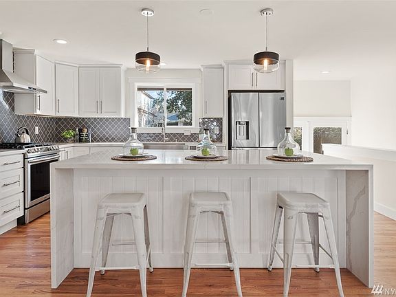 Beautifully updated Greenlake home features 4 beds 2 baths and 2200 sqft of living space. Kitchen boasts quartz countertops, soft close cabinets and stainless steel appliances. Remodeled baths include new vanities and tile shower surrounds. Separate entrance available to MIL area and perfect for airbnb or extended living. Mature landscaping and private stream offer park like setting. Detach shed has power and great for office or play house. Parking in front and back can accommodate RV/boat.