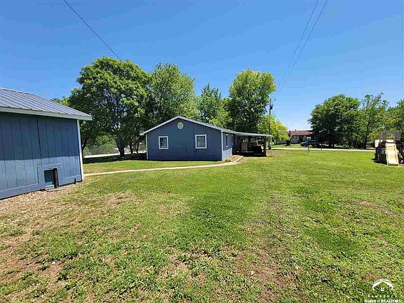 Cute 2BR, 1 bath ranch with a roomy layout. Sits on 2 lots and being sold with 2 additional lots to the West. walking distance to pool and playground. All electric, double pane windows, Brand new patio doors with covered area off back of house. Pellet/Corn Stove with approx. 1 pallet of pellets to stay, new guttering with gutter screens, 30 year roof 10 years ago, new roof on garage 5 years ago. 3 bay insulated garage(all but ceiling). 8x8 storm shelter