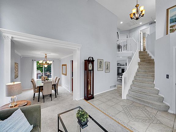 Embrace Colorado living with this rare walk-out two-story, just minutes from Chatfield State Park and endless outdoor recreation! With 3,100 sq. ft. of living space – including a finished basement – this 5-bed, 4-bath home boasts abundant natural light, built-in features, and space for entertaining! This home is move-in ready with a refreshed exterior (2023), furnace and A/C (2024), and brand-new water heater. Vaulted ceilings lead into the foyer, while arched windows and crown molding create elevated interest in the open living and dining area. The main level features a convenient laundry room off the attached two-car garage and a nearby half bath. An eat-in kitchen showcases stainless steel appliances, generous counter space, and a peninsula providing subtle separation from the family room while preserving the open layout. The family room features a cozy gas fireplace set in a wall of built-ins, as sliding glass doors lead out to the deck. The highlight of the home is the backyard, a low-maintenance hosting oasis. An expansive upper deck spans the length of the home with stairs leading to a covered and extended flagstone patio—framed by mature landscaping for privacy and shade. Upstairs, the spacious primary suite offers a private retreat, including a 5-piece en suite bath with a soaking tub and an oversized walk-in closet. Three additional bedrooms with bright windows share a spacious full bathroom nearby. The finished walk-out basement offers flexible living space with a charming office nook and a light-filled rec room with custom built-ins, flowing seamlessly to the patio. Host loved ones in the private guest suite, featuring a generous bedroom and ¾ bath. Located a stone’s throw from Chatfield State Park, and under 20 minutes from Downtown Littleton and Red Rocks. Whether you’re spending the day on the water, exploring local shops, or taking in a concert under the stars, the best of Colorado living is right outside your door.
