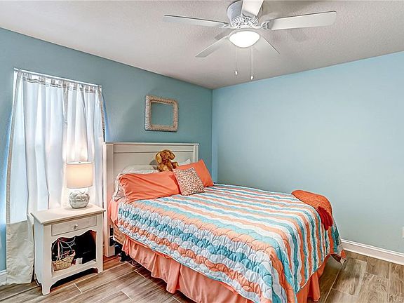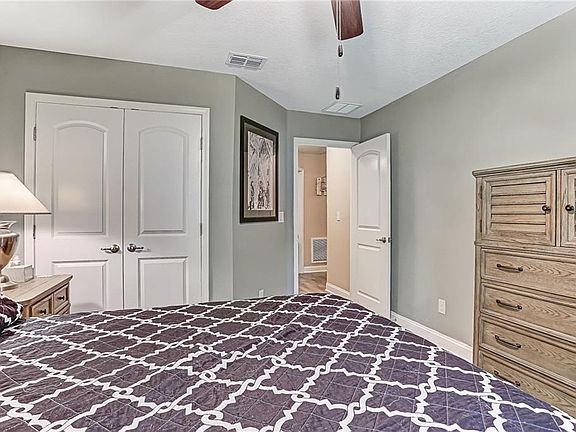This 4 year old brick home was upgraded and treated with TLC. New French Gray wood-style porcelain plank tile installed throughout the home. Glass back splash, quartz counter tops, and all stainless steel appliance in the kitchen. Custom made frosted glass French doors to the office. Master bath has his and hers sinks with quartz counter tops, white subway tile in the shower with roller disk glass door and an over sized linen closet. His and hers walk-in closets as well. The 1/3acre back yard has a custom made 196 sqft shed with electricity, 6 foot white fence with two gates (10 feet and 12.5 feet) for access, custom made hurricane shutters, rain gutters, 30 year architectural roof and low E windows on the house. Oaks at Bristol is a quiet neighborhood that allows boats and RVs to be stored behind the fence.