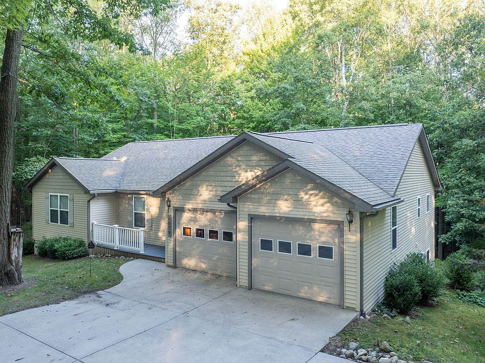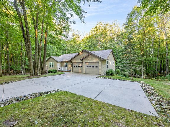 Canadian Lakes ranch home with full walk out lower level. Wooded setting across St from Lake of the Clouds/Lost Lake beach and park areas. Walking distance to Finger Lake and St Ives Golf course. Open great room layout with spacious deck overlooking wooded scenic area. Walk out area is partially finished and awaits your personal finishes. Tons of opportunities with this high demand house. Full house generac generator. Lower level plumbed for bathroom. Full Canadian Lakes amenities- free golf, lake access and docking, hiking, biking tennis, pools and MORE. Call for details.