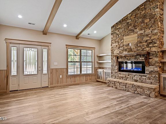 WOW! PRIVACY & country living at it's best, yet only 8 miles to shopping! This 3 bedroom 2 bath, new construction has MANY upgrades!! Inside, the living room has an open floor plan, vaulted ceiling with exposed beams, stone fireplace w/blower, built-in cabinets & shelves. The kitchen has a nice grey cabinets, leathered granite countertops, upgrade stainless appliances & large pantry. LVP flooring & all of the bedrooms have exposed beams in the ceiling. The master bedroom has a vaulted ceiling, walk-in closet, double sink vanity, deep soaking tub with tile surround & a private entry to the HUGE covered patio. Outside, there is 5 private acres with great privacy, 1000sf of covered porches & a concrete driveway. *Buyer to verify all information & measurements before making an informed offer*