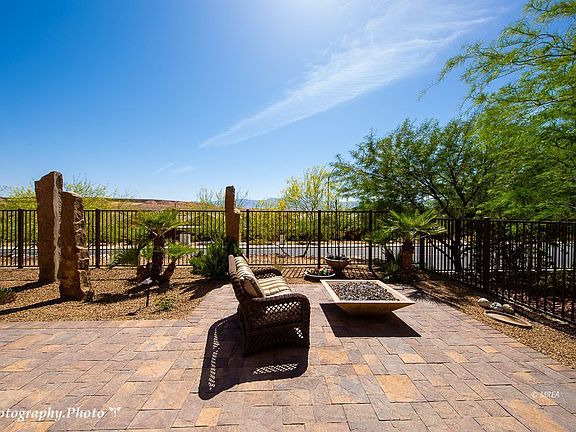 Located on an elevated premium home site with panoramic mountain views, this Preserve model in Sun City is fully upgraded. The extended pavered patio is great for entertaining and back yard eastern exposure is perfect. Towering rock pillars add to the unique desert landscaping and give ambiance to the fully fenced outdoor space. The garage has a much needed extension including a unique separate storage room w/ AC. The floor plan is open and popular with 2,126 SF hosting an expanded Sun Room off of the dining area and a costly Bay Window in the master bedroom. Custom tile plank flooring cover the floors and tall ceilings open up the space. Designer arches lead you into the spacious den, great-room and sun room. Timeless black granite and gorgeous custom cabinets that reach to the ceiling accent the kitchen. Extending an entire wall in the great room is an awesome built in bar featuring a bar sink, granite top & drink refrigerator. Both bathrooms have beautiful tile surround showers & premium counter tops. The master suite is roomy and the bay window invites in the stunning view and great natural light. The paver walk leads to an outdoor garbage enclosure that is so appreciated.