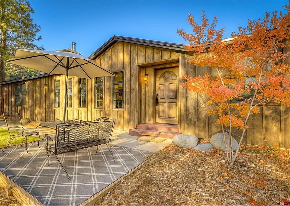 Ah, The Library Home... As it’s affectionately known, this mountain hideaway is a place of quiet refinement and thoughtful craftsmanship. Once a humble 1980s dwelling, it has been utterly reimagined — the owners sparing no expense in their devotion to beauty and comfort. Outfitted with brand new state-of-the-art heating and cooling, fully foam-insulated, and cloaked in rough-sawn, dead-standing spruce harvested from the San Luis Valley, the home breathes both mountain ruggedness and modern elegance. A sweeping roundabout welcomes you — ample parking, a gracious sense of arrival. The custom patio, with its exquisite pavers, is framed by a fully irrigated lawn, a careful drip system, and stands of mature trees whispering in the breeze. The property is fenced in black steel and electric — secure, striking, and timeless — with a custom lean-to barn and tack room awaiting your horses, or perhaps your motorized ones. Every inch of these five usable acres invites purpose and pleasure, with a tidy storage shed centered at the heart of the drive. Step inside, and the story deepens. White rough-sawn oak floors underfoot. New black custom Marvin windows framing the mountain light. High-grade quartz countertops. Imported Italian Saltillo tile. The master bath, a sanctuary: triple-headed walk-in shower, sunroof above, rain shower cascading like a mountain spring. The kitchen is as functional as it is artful — dove-tailed, soft-close cabinetry, a butler’s pantry with second sink, imported brass handles from England, and custom lighting hand-fashioned by LightTexture. Every Bosch appliance — nearly new — hums with precision. And all of this… just five minutes from City Market, ten to downtown. The Library Home rests within one of Pagosa’s most distinguished neighborhoods, paved and peaceful, once belonging to one of the valley’s oldest ranching families. The Library Home… a place where craftsmanship meets quiet legacy. A home not merely built, but composed.