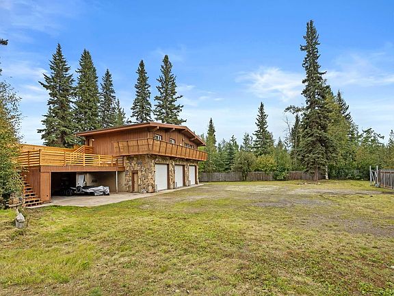 Welcome to 884 Dennis Road in North Pole, a one-of-a-kind property designed for both comfort and utility. Sitting on a half-acre lot with a full privacy fence, this 2-bedroom, 3-bathroom home with a 3-car garage offers approximately 1,350 square feet of garage space below and 1,350 square feet of living space above. The ground floor is built for Alaskan living, with three oversized garage bays, natural light from windows, and even a vehicle lift—perfect for mechanics, hobbyists, or anyone with large vehicles and recreational gear. Upstairs, the living quarters open into a thoughtfully designed floor plan featuring a chef’s kitchen with solid surface countertops, custom cabinetry, propane and stainless steel appliances, and a double wall oven. The dining area and spacious living room flow seamlessly together, making this level ideal for hosting or simply enjoying daily life. Down the hall, the primary suite includes its own full bathroom, while the guest bedroom sits across from a shared bath. Outdoor living is highlighted by a wraparound deck spanning the front and sides of the home, offering plenty of room to relax or entertain. The property also includes a large carport capable of holding two trailers or up to four ATVs, topped by a newly constructed, fully fenced entertainment deck for private gatherings. Ample exterior parking adds convenience for guests and extra vehicles. Built in 1974 and zoned General Use District 1, this home combines flexibility, function, and style. Located just two minutes from Fort Wainwright and about 10 minutes from Eielson Air Force Base, 884 Dennis Road is the perfect blend of work, play, and convenience in the heart of North Pole.