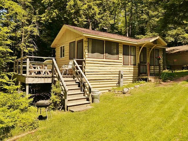 THREE LAKES CHAIN CONDO - This one bedroom, one bath cabin is part of the Rustic Acres Condominiums located on Deer Lake of the Three Lakes Chain. Very level 2.7 acres with sand frontage approaches some of the finest water Wisconsin has to offer. The cabin features a large deck overlooking the lake, beautiful brick fireplace and pier space for your boat. The well-kept grounds are ideal for lawn games or relaxing in the sun or enjoy the beautiful sandy beach which is great for swimming. A large screen house at the lakeshore offers an excellent place for viewing lake activities or enjoying your lakeside cookout. There is a wet boathouse with 2 slips and game room above. Fish off the pier or head out to one of the 28 lakes of the Three Lakes/Eagle River Chain. The cabin has an excellent rental history - so you can rent your condo when you're not here for some extra income or buy it as an investment property. 8033