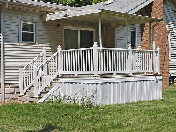 Nicely situated in quiet neighborhood, this lovely bungalow offers two big bedrooms and all the amenities. Cozy fireplace with radiator side heaters, kitchen with granite counter top and breakfast bar, large bath with newer fixtures. There's even a sun room, and covered deck off the dining room. All windows were replaced about 5 years ago, and furnace and hot water tank were just recently replaced. The carpet in the second bedroom is newly installed. The garage is detached and will easily hold 3 cars with space left over for a workshop. There is access to the garage both from Howland-Wilson Rd. SE and Huntley Dr. SE. Front and back overhead doors allow for convenient drive-thru access.