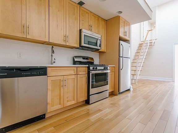 *Virtual Tour Available* Born in 1900, the building was reconstructed in 2015 to Architectural Digest worthy specs. Elements of Brooklyn's industrial past such as exposed central air ductwork, skylights, and exposed bricks are married with traditional townhouse elements in the decorative wood moulding and elegant proportions. Apartment features: HOME OFFICE, washer and dryer, dishwasher, central air connected to NEST Smart Thermostat, semi-private roof. Building features: CCTV security, bike room, 750 SF landscaped yard for meeting your neighbors and making memories. Professional property management, and perhaps the best location in Bed-Stuy on the cusp of Bushwick. 3 blocks from the express Gates JZ and everything else you could want in a neighborhood. Welcome to your new home. Cats ok, no dogs, sorry.