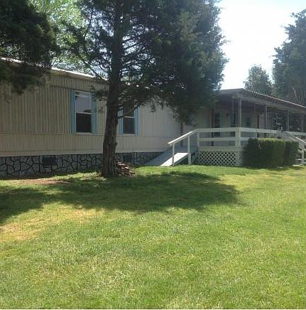Charming singlewide situated on a .93 acre lot with pretty country side views. This home has been well taken care of and offers a large covered front porch, nice size living room, pretty updated kitchen, master bedroom with large master bath, split bedroom design with two other bedrooms and laundry room equipped with washer & dryer. There is a large sunroom across the back of the home. The large lot has many pretty flowers and trees plus a mountain view. There are three storage buildings on the property. Nice home and property.