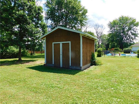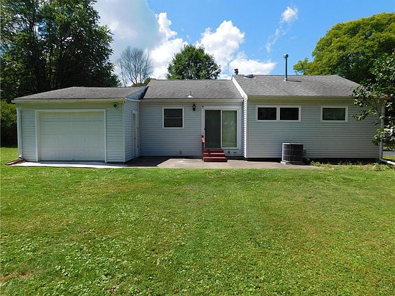 Vinyl-sided Ranch home on a beautiful half acre lot in the Hilton school district. Hardwoods recently refinished, freshly painted with vinyl windows throughout. All appliances convey; 5-burner gas stove and dishwasher are brand new! Slider from eat-in kitchen to patio and backyard. Super nice 12x12 storage shed on concrete pad. Youâll love having front and rear overhead garage doors and central air! Double-wide blacktop driveway. Basement is squeaky clean and partially finished with supplemental heat. Seller is providing a 1 year home warranty to Buyer! Easy showings with instant appointment confirmation. Seller will be reviewing offers at 3 PM Wed Aug 5th. ** Ask me about a $20K grant for improvements that you do NOT have to repay, nor be a 1st time homebuyer! This grant also can be used in conjunction with the Dream Program! **