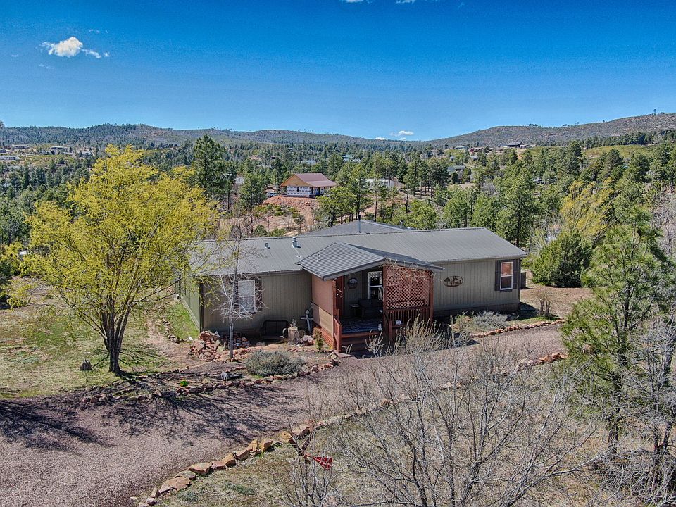 Be sure to check out or ask about the walk through video! Well maintained home in a great area & NO HOA! The home sits on 1 acre with great views. There is a 2 car garage with workshop & two 18 x 21 metal outbuildings as well as RV hook-up. Sit on the back deck or play a game of bocce ball & enjoy the views! It is not uncommon to see deer passing through. There is a fenced area for your furry friends. The home boasts a split bedroom layout, 2 living spaces, pellet stove, vaulted ceilings & metal roof. The kitchen has been updated with Corian countertops & beautiful backsplash. There is lots of cabinet space! The master bath has his & her sinks & walk in shower. The guest bath has a tub/shower combo. There is an enclosed space off the kitchen adding an additional 130 sq ft!