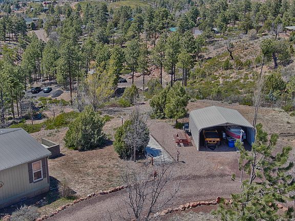 - Exterior Features: Deck, Deck - Covered, Gutters/Down Spouts, In the Trees, Landscaped, Panoramic View, RV Hook-Up, Street Paved, Tall Pines On Lot
