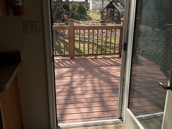 Nice 2 bdrm townhome. 1 full bath upstairs with double sinks. Half bath downstairs. Nice neighbors too. Appliances included - stove, refrig, microwave, dishwasher, full size washer/dryer. Electric heat pump with central air. Outside deck area off dining room area. Off-st parking. No pets. No smoking. Owner pays for sewer and trash.