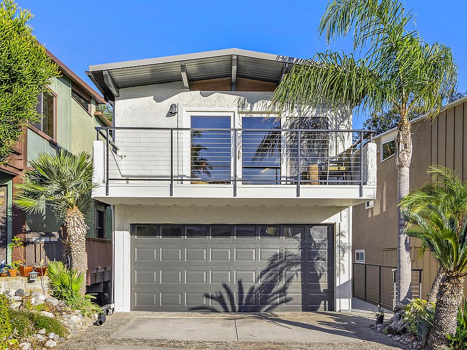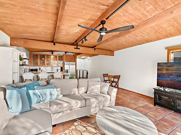 Ocean view hilltop home located within walking distance to park, tennis, and hiking trails. This home features open living, dining and kitchen with open beam cathedral ceilings opening to ocean view deck. Kitchen has granite counters, wood cabinetry with decorative glass panes, tile pavers and wood floors. All three bedrooms have private baths. Upper level Master bedroom has canyon view deck and high beamed ceilings. Main floor bedroom, indoor laundry, third bedroom has access to yard. Two car garage. Just minutes from town and beach. Tenant pays all utilities: gas, water, electric, cable, wifi, trash, gardener Unfurnished for 12 month lease No smoking, Submit on dog