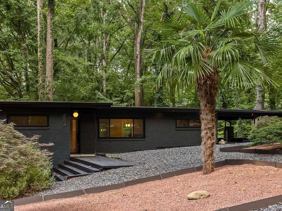 Welcome to 884 Vistavia Circle, a rare midcentury modern Decatur property that gives you all the beauty of living in the woods without the hassle of maintaining a yard. The custom dryscaped front yard is thoughtfully designed with stone, slate, and plantings that thrive with little care. No grass to mow, no weekend yard work, just pure curb appeal. Inside, light-filled living spaces flow easily from the updated kitchen to the dining and living rooms, all opening onto a treetop deck perfect for morning coffee or evening entertaining. The primary suite is a serene escape with its spa-like bath, and two additional bedrooms share a beautifully finished hall bath. But the real bonus? A fully independent lower level apartment with its own exterior entrance. It includes a full kitchen, dining area, living room, laundry, one bedroom, and one bath, ideal for house hacking, short- or long-term rental income, or private guesta quarters. The unfinished portion of the basement offers even more possibilities: connect it to the main house to expand your living space, add a second bedroom to the apartment for more rental revenue, or create the ultimate workshop, gym, or studio. With three levels of decks and patios, this home is designed to connect you to its wooded surroundings at every turn. Updates include a new roof (2022), multi-zone HVAC (2021), Tesla charger, and mudroom with built-in storage and dog door. Just steps from Lullwater Nature Preserve and a block from W. D. Thomson Park, you're minutes from Emory, CDC, and Toco Hill shopping while feeling worlds away from the bustle. This home is a true opportunity: low-maintenance living with built-in income potential and endless ways to make the space your own.