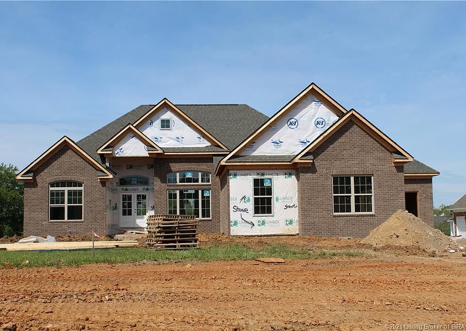 CALLEIGH II PLAN built by DISCOVERY BUILDERS. WHY CUSTOM BUILD when you can have this Discovery Builders Quality Built Home with Custom Home Features without the Custom Home Building Process. Spacious Ranch Style Home with over 2200 SF on the Main Level features a Large Covered Back Deck overlooking the 1 Acre +/- Home Site. Situated on a Dead End Street in Floyd Central High School District. This home includes 9/11' Ceilings Throughout, and Custom Trim Molding Throughout. As Soon as you Step into the Foyer you will recognize the DISCOVERY BUILDERS DIFFERENCE...the Attention to Details. This Open Floor Plan is Great for Entertaining Family and Friends, with a Huge Island Bar in the Kitchen, Great for Serving or Seating. There's a Large Dinette for daily dining with Great Views and easy access to the Covered Deck and there's also a Formal Dining for Special Occasions. The Owner's Suite is Spectacular and includes a Large Owner's Bedroom and Luxuries Owner's Bath is a Large Soaking Tub, Custom Tile Walk-in Shower, Double Vanities with storage, a Commode Room and Large Walk-in Closet with CUSTOM LAMINATE SHELVING. The Lower Level is a Full REAR WALKOUT with 9' Foundation Walls and is Professionally Finished with Media/Family Room, Game Table/Rec Space and Wet Bar. There's also a GUEST BEDROOM SUITE and FULL BATH. The Lower Level has Great Natural Lighting and steps out to a Large Covered and Open Patio. CALL TODAY TO VIEW THIS HOME. Sq ft & rm sz approx.