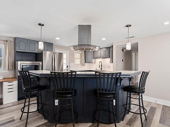 This stunning remodeled ranch home in Shaw Heights is a must-see! Step inside to a fully updated interior with an inviting open floor plan featuring sleek vinyl flooring throughout the main living areas & plush, cozy carpet in the bedrooms. The show-stopping dining & kitchen area boasts stainless steel appliances, gleaming quartz countertops, a spacious island with a cooktop & range hood, a breakfast bar, & stylish modern hardware. The expansive living room offers plenty of space for hosting friends & family, all within a smart home-enabled space that includes power usage monitoring for enhanced efficiency. Retreat to the oversized primary suite, complete with a large walk-in closet & an ensuite bathroom with contemporary accents. The oversized non-conforming third bedroom provides endless possibilities, whether you need a home office, gym, or additional living space. Step outside into the fully transformed backyard, your private oasis for year-round enjoyment. Lounge under the beautiful pergola, gather around the built-in gas fire pit, or enjoy the low-maintenance turf. Plus, two spacious sheds provide extra storage. The generous driveway easily accommodates three vehicles, while the dedicated RV parking space fits a 30’ camper & includes an outlet that can also double as an EV charger. For added peace of mind, the home features a whole-home generator backup outlet off the electrical panel. Located in a fantastic neighborhood with quick & easy access to highways 25, 36, & 76, this move-in-ready home seamlessly blends modern convenience with stylish comfort.