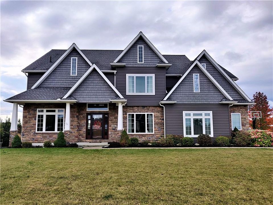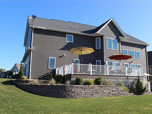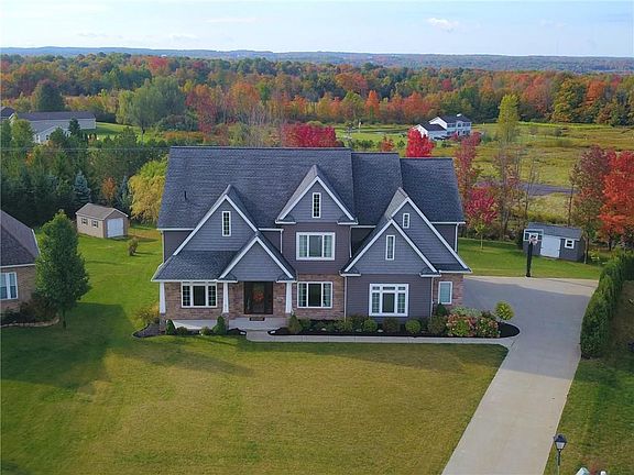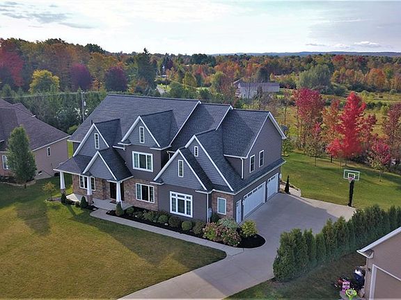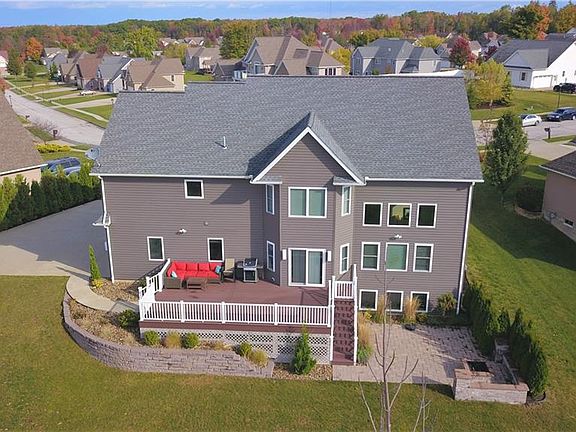 This stunning 7 yr. old, 2 S home rests in the popular Traditions Subdivision in Summit Township. Offers gorgeous finishes thru out; handmade cabinets, granite countertops in the kitchen. Dining room w/tray ceiling. 2nd floor balcony/cat walk over looks 2 story great room. All bedrooms located on 2nd level w/laundry room. Huge LL game room has wonderful views of the peaceful landscaped setting. Composite deck & stone patio with firepit overlooks the private yard as seen in overhead shots.