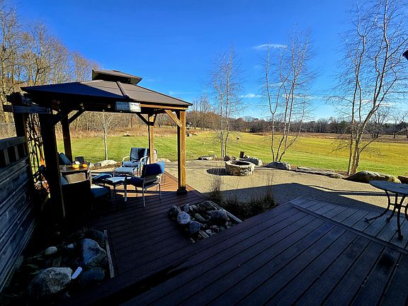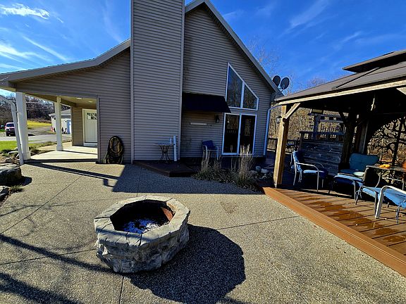 Outside is a beautiful patio with a built-in fire pit perfect for relaxing evenings, entertaining friends, or enjoying the quiet beauty of the property.