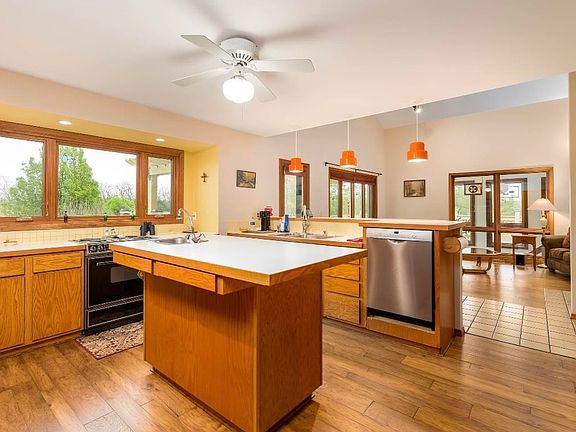 You found it! 4 bedroom, 3 bath, this highly sought after country living property offers everything you could want in a suburban estate! This unique home was designed, constructed, built and lived in by the architect in 1984 with the west side berm style allowing for energy efficiency. Current owner has lived here for over 17 years, cleared and dug out a pond (with fish) and finished the upper level into an office not only to work in but have a great view of the property. Main floor has 1 bedroom, bath, kitchen, living room, family room, plus sun room. Downstairs is primary bedroom with walk in closet and en suite, 2 more bedrooms, bath, and family room. The attached two car oversized garage offers convenient parking for the homeowner but if you need more space there is also a shop building that's a mechanics dream! In 2009 owner built a 40 x 50 detached 4+ car shop that is insulated, heated and ready for any project with 220 electric, a two post car lift, and thick concrete floor! It has rough in for plumbing as well. Sits on almost 5 acres with plenty of acreage to roam. Sellers have lots of wildlife including deer that frequent the property, as well as quail and turkey (the one female turkey will expect you to feed her in the evening on the back porch)! House has triple pane windows with transferable warranty, new steel siding, geo-thermal HVAC system, wrap around deck on east & south side of home (Pergola on the east side) and in Valley Center School district. Sits on a paved dead end road, off the grid and a great place to call home. Setup a private showing today before it becomes someone else’s dream property.