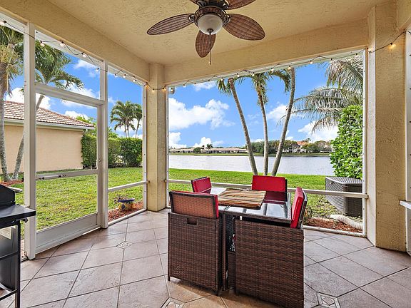 Welcome to your dream home in the highly sought-after, gated community of Andros Isle! This spacious two-story residence offers 3 bedrooms, 2.5 baths, and a 2-car garage. Enjoy Florida living at its finest on your screened-in patio overlooking the serene lake--a perfect spot for morning coffee or evening relaxation. Sitting on a larger lot due to the FPL easement, this home offers extra space to enjoy.Step inside to dramatic ceilings, elegant crown molding, 16x16 diagonal-set tile flooring and luxury finishes throughout. The beautifully updated kitchen boasts brand-new appliances, including a double oven, a new stove, dishwasher and refrigerator, along with soft-close cabinets, an extra-deep sink, and durable granite countertops. With two pantries, storage is never an issue! Upstairs, you'll find wood-like waterproof LVP flooring throughout, including in the spacious primary suite, which features a California built-out closet and a spa-like ensuite with a large soaking tub, dual shower heads, frameless glass doors, and a linen closet for added convenience. Every window in the home is hurricane-proof, providing year-round peace of mind.