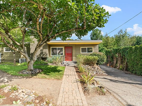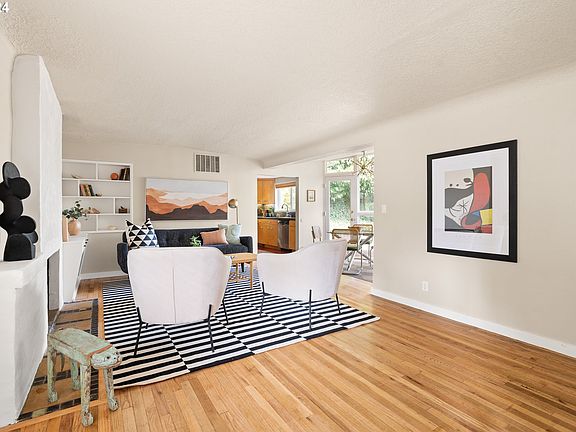 Classic mid-century modern (MCM) one-level detached condo, offering original charm along with numerous updates! A new tear-off roof was installed in 2022. Brand new sewer line and electrical panel. The home features oak hardwood floors, original built-ins, a wood-burning fireplace, and a wall of windows that overlook a private yard. A door from the dining room to the back patio creates an excellent flow for entertaining. Enjoy gatherings around the fire pit in the fully fenced backyard, complete with mature landscaping. Ample storage is available in the mud/laundry room conveniently located off the kitchen. The home has 2 bedrooms and a bright, airy bathroom. Nestled in a quiet southwest neighborhood, it's just half a mile from the restaurants, coffee shops, and food carts in Multnomah Village, and only blocks from the fabulous new Spring Garden Park. This home is part of a two-home HOA, with a small monthly fee covering insurance and shared water/sewer costs. Additionally, 2 parking spaces are reserved for this home.