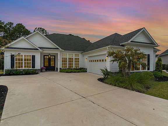 One-of-a-Kind Custom Sprawling Ranch in Waterford Plantation – 4 Bed, 2.5 Bath on Private Cul-De-Sac Lot. This stunning, 2-year-old custom-built sprawling ranch, nestled at the end of a quiet cul-de-sac in Waterford Plantation, offers unparalleled privacy and charm. The unique open floor plan – the only one of its kind in the community – creates a spacious and inviting atmosphere, enhanced by expansive windows and abundant natural light. The home features 4 bedrooms, including a spacious primary suite with French doors that open to the backyard patio, a luxurious bathroom with a freestanding tub and glass-enclosed shower, and an oversized walk-in closet. Vinyl flooring throughout the entire house with craftsman style trim adds a clean and modern aesthetic. The custom kitchen and bathrooms boast shaker-style cabinets, quartz countertops, and unique fixtures. Outside, enjoy courtyard-style landscaping in the front, 30 newly planted hedges for maximum privacy in the back, all set on a private wooded lot. Additional highlights include an oversized 2-car garage, more than 30 recessed lights evenly distributed throughout the living space, fans in every room, and a bonus living/playroom. Experience ultimate comfort and privacy in one of Carolina Forest's most sought-after communities!