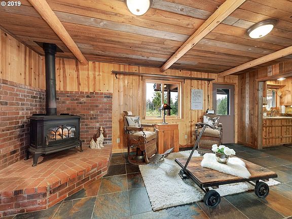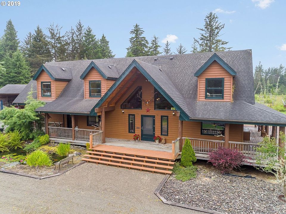 Let this custom, lodge-inspired home fulfill your country-living dreams, yet located close-in Gearhart & within minutes of the ocean! This stately county home boasts a wrap-around porch, vaulted great room, slate floors, main level bedroom & bath & a cozy gas fireplace. Exterior Amenities Include: 3.02 acres, spacious shop, garage plus 4 carport spaces. Electricity & water to adjacent property will be separated prior to close of escrow.