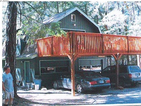 Peace & quiet describe this lightly wooded haven w/large deck & hot-tub. The home features open kitchen-dining area-living room. Vermont Casting certified wood stove & rock hearth. Gorgeous hardwood floors, exposed beams & vaulted ceilings. MB has French doors & a deck. The 5200 SF out bldg. was used as indoor horse arena, could even be a aircraft hanger or ?? Over-sized 2-car garage + carport w/guest quarters or office & a deck + more