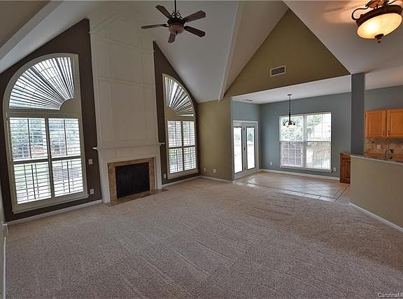 Location! Location! Location! Master down with 2 story Great Room that features gas fireplace and open floorplan. Recently updated master bath with seamless shower!!! All 3 bathrooms have been updated. Kitchen with beautiful granite counters that overlooks the 2 story Great Room. New carpet and neutral paint throughout!! Garage with work area and built in overhead storage. Fenced yard that features paver patio, pergola and storage shed. Buyers will not be disappointed!!! Convenient to Blakeney shopping, retail and restaurants. Stonecrest around the corner..Great Location!!! Must see!!!