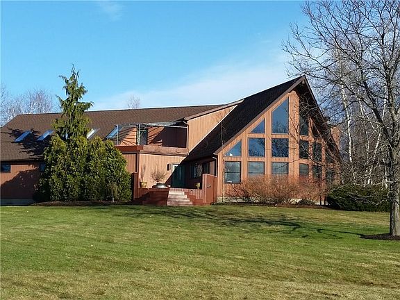 Amazing countryside & sunset views from the walls of windows in the great room of this meticulous house. The kitchen, dining room, great room is all open & features a gas fireplace, soaring ceilings, & a spectacular balcony overlook. Enjoy 1st or 2nd floor masters & 3 full beautifully tiled baths. Additional seating area on 2nd floor w/skylights & a deck, ideal for 2nd family rm or homework area. Giant 86x42 outbuilding is perfect for all your toys-a killer free bonus at an already great price!