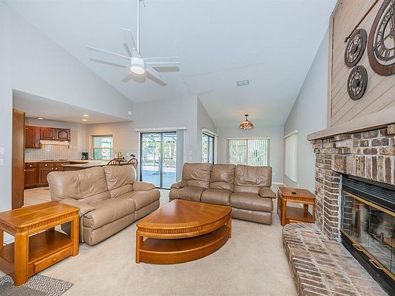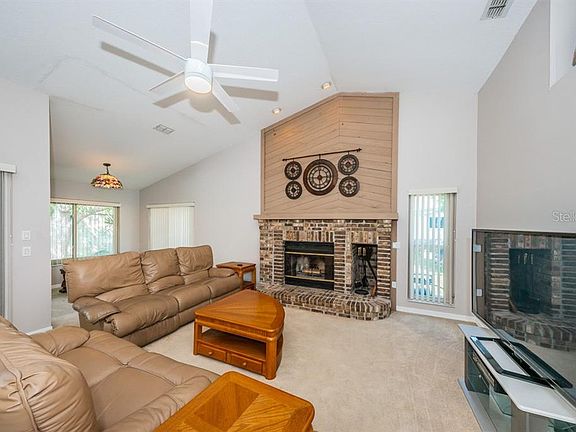 Welcome to this move-in ready 3 BR, 2 bath home with attached 2 car garage. With almost 2000 SF of living space, this lovely home features many updates including: A/C (2018); NEW water softener, NEW washer and dryer; NEW garbage disposal; NEW hurricane rated windows; freshly painted interior; NEW garage door; roof (2009). You will notice the amazing curb appeal when you pull up to this home. The great room features a vaulted ceiling with brick fireplace, perfect for those chilly Florida evenings. There is plenty of room for entertaining with formal dining and living spaces - or if you choose, the living space would make a perfect home office. The kitchen is light and bright with stainless steel appliances, double oven, cook top and plenty of storage and counter space. The bedrooms are all spacious with owner's having an ensuite bath. Convenient location to shopping, restaurants, medical and the beautiful Florida beaches. Call today for your private showing.