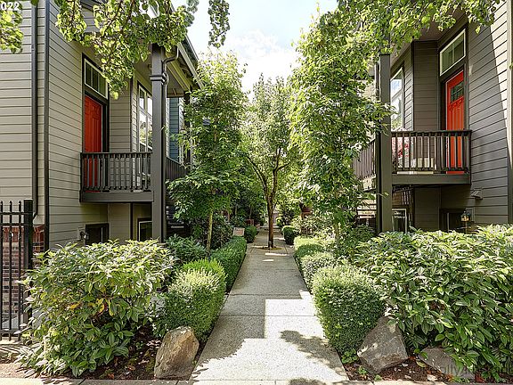 Superbly located townhome in Sellwood with beautiful established landscaping, buildings w/all freshly painted exteriors. Walkable to New Seasons, parks, library, restaurants, as well as multiuse trails and the Orange Line. This home is well laid out with high ceilings, 3B/2BA on upper level plus lower level 4th bedroom/flex space w/exterior entrance and half bath, could be a fantastic office, guest space or family room. 2 car garage for parking and storage, central AC for those hot summer days! [Home Energy Score = 8. HES Report at https://rpt.greenbuildingregistry.com/hes/OR10119869]