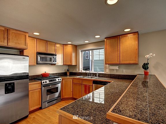 This open & airy Green Lake townhouse is the perfect home base for your active lifestyle. Start the day with a lap around the lake & a latte. Invite friends for a BBQ & enjoy the huge fenced back yard. You'll love the spacious floor-plan, fresh paint, new designer carpet, gleaming hardwoods, big windows, gas fireplace. Cook's kitchen w/ stainless & granite, gas range, big bar top. Vaulted top floor beds include master w/walk-in closet. Great location, easy frwy access (99 & I-5). No HOA dues!