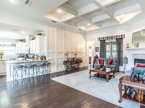 This stunning brick home is immaculate and pride of ownership shines in every corner. The open floor plan, with the master on the main level and 2 additional bedrooms down, is truly a must see. Features inside the home include: custom cabinets, large island in kitchen, beautiful granite, walk in pantry, hand scraped hardwood floors in entertaining areas, built- in wine rack, tons of closet space, beautiful coffered ceilings in great room, whole house water filtration system, crown molding and wainscoting, Z wave alarm system, and many other custom features. Outside you will find a well- maintained yard, LED lighting, fenced in backyard, and a storage shed. Window treatments in dining room and great room, bar stools in kitchen, mirror above fireplace, rugs on hardwood, and outside gas grill to remain. This beautiful home is centrally located and close to schools, parks and shopping and I-10.