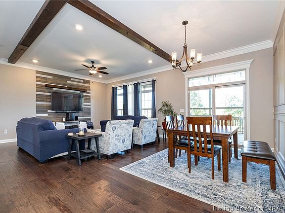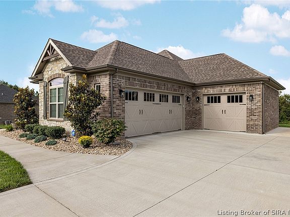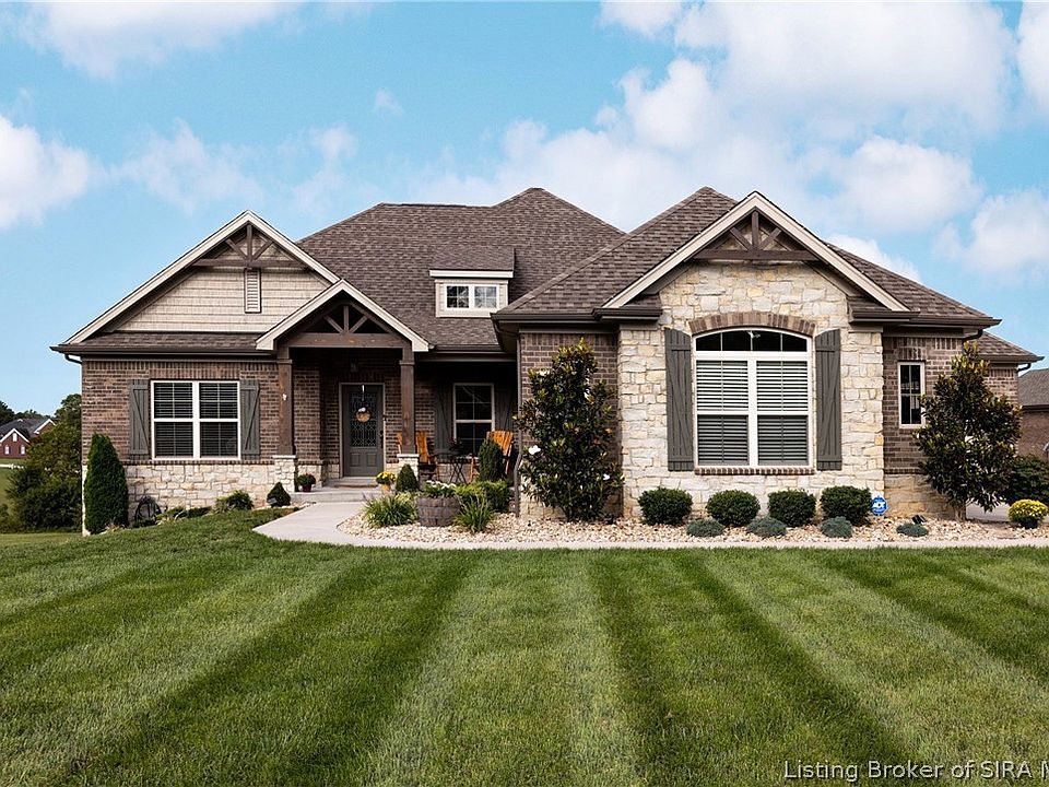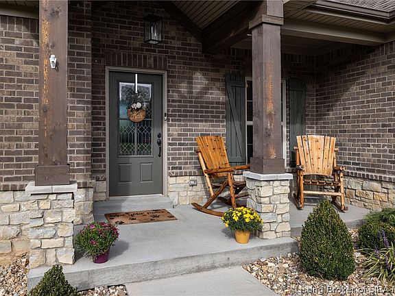 Find out how you can get a lower mortgage payment on this property with a 2/1 rate buydown program. This stunning 2-year-old home in spectacular Highland Lake Estates has a peaceful vibe that you'll love. From the barnwood accent wall and custom wood accents inside, to the 1.1 acre lot outside, you'll feel like you're living in the country with everything you need nearby. If you want to be outside and enjoy that beautiful yard and trees, you can sit on the covered deck, or the covered patio, or around the firepit. The covered deck has blinds for shade, lights for evenings, and a fan for hot afternoons. This one-story home has 3 bedrooms on the main level and one bedroom in the finished walkout lower level. Two of the bedrooms on the main floor are on the left side of the house, and the primary is on the right side of the house. The fabulous, open kitchen has soft close drawers, and a huge island. The walk-out finished basement has a wet bar, wine fridge, bedroom #4, full bath, office/gym/craft room, storage room, and utility garage. The basement has nine-foot ceilings and large windows. Other features of this home include: water softener, reverse osmosis, air purifier, ADT security system, underground fence for dogs, walk-in closet, and garage spaces for 3 cars. The $300 annual HOA fee covers maintaining the lake, the lovely walking path around the lake, road maintenance, snow removal, tennis court, basketball court, and entrance. In Floyd Central High School's area.