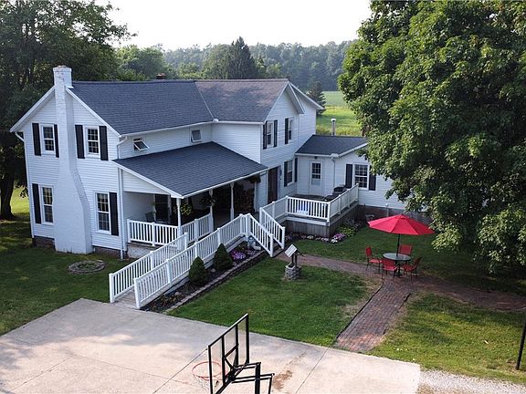 This gorgeous property is a rare gem! You’ll have room to spread out and entertain, work on projects, or just enjoy nature on 10 private acres with a huge home, guest house converted from a 2-car detached garage, finished pole barn & a bank barn for storage/workshop, farmland, a meadow, woods, and a stocked pond! The home was formerly the White Fence Inn Bed & Breakfast, is handicapped accessible, and boasts 7 bedrooms and 7.5 bathrooms (1 bath in the guest house)! The spacious primary suite is a haven to itself, with cathedral ceiling, full bath with garden tub, and walk-in closet. There are 2 newer heat pumps and 2 hot water heaters in the house, and 1 hot water heater in the guest house. The land is beautiful, with a combination of tillable, wooded, and mowable acreage. This property has it all! Schedule your showing today!