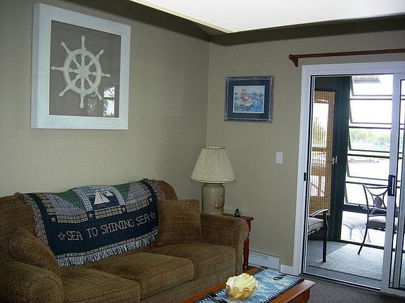 Soak up the sun while sitting in your sunroom overlooking your dock at the door. Beautiful views from either direction of the condo. Sold furnished. All updated since 2008: New flooring in kitchen, bathroom and hallway. New Carpet in Living room, bedroom and sun room. Stackable washer/dryer, stove, refrigerator, garbage disposal, portable dishwasher, and living room air conditioner. New closet doors in bedroom and living room. New heat registers. So come to stay or come to play at your new affordable getaway!
