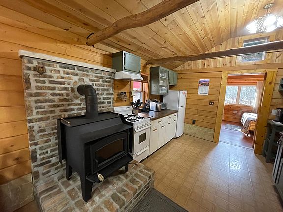 Discover your ideal Northern Michigan retreat in this meticulously maintained cabin. Once a YMCA camp cabin relocated and converted to cozy year-round home. Nestled on a secluded 2.3± acre heavily wooded parcel, it's just a short walk from the Little Manistee River. This cabin features all the ''Up North'' charm with knotty pine interior, exposed beams, metal roof and a woodstove for cozy evenings, along with a washer/dryer hookup. A new well was installed in 2023, garage with electric and a cement floor, a storage shed with power. Enjoy evenings around the fire-pit area, perfect for gathering with family and friends. Located on a private road for additional seclusion. This is THE Northern Michigan getaway!