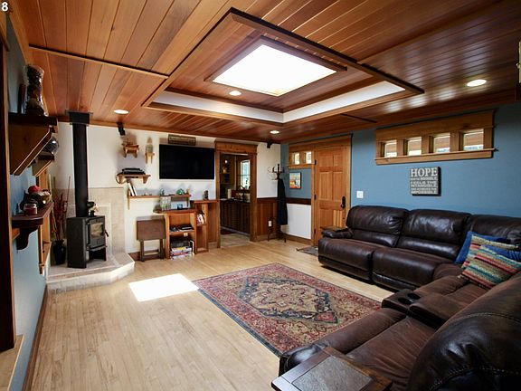 Single Level Custom Home remodeled in 2008. 3 bds + office & 2 full baths w/ radiant heat floors. Tongue and groove cedar ceilings w/ skylights throughout! Hard wood floors & stainless appliances. 2 car gar + HUGE SHOP. Studio apt above shop. All finish work in apartment completed within escrow. Additional 2 story garage with drive through doors & bonus room plumbed for future bath. 3/4 acre lotl! Contractors home, Broker Owned.