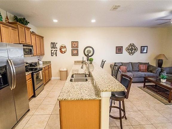 PRICED TO SELL! Great Opportunity to own a one of a kind townhouse inside one of the best known resort communities in the Orlando Disney area. This four bedroom townhouse has the perfect for a Short Term rental program, this is a very unique home because it is one of the only homes with a front pond view and a rear pond view, this well finished home comes with a large downstairs bedroom and three bedrooms upstairs including the master bedroom. It has Tile flooring on all common areas with granite counter tops and stainless steel appliances, a big pool area great for entertaining and for family bbq. It is located inside Paradise Palms where you have access to a HUGE pool with a slide, 2 jacuzzi tubs, child's wet play area, bar, restaurant, cinema, game room, etc.. Don't miss this opportunity.