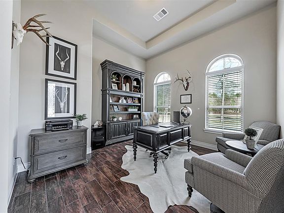 Pristine Dunn & Stone home nestled on just over 1 acre in the highly sought after subdivision of Ridgelake Shores. This 4 bedroom 3.5 bath home with 3 car garage is in immaculate condition backing up to a wooded reserve with no back neighbors. Features include custom wine room with iron doors, wood tile throughout, soaring 20ft. ceilings, custom solid glass doors off back patio area, new light fixtures, custom draperies, water softner, 8ft. doors, triple sink in kitchen, stone fireplace, wood beams, off white custom cabinets with large venthood featuring pull out spice drawers, marble backsplash, under cabinet lighting, butlers pantry, double ovens, fenced in backyard area with large covered patio, sprinkler system, laundry room leads to master bath, stained wood vanities in bathrooms, large gameroom area with large storage closet, wrought iron stair railing, recessed lighting throughout & much more. This home feels brand new & has pride of ownership written all over it.Pics tell all!