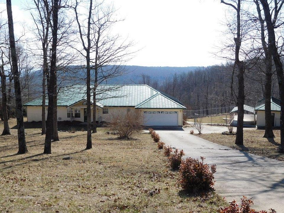 Spectacular view of the mountains await you off the deck of this wonderful home on 2.32(+/-) acres. Maintenance free exterior, additional room/office could be a guest room. Minutes from Harrison & Ponca - Buffalo River Rec areas! Detached building has additional carport, plumbing & heat. Bank owned, Sold AS-IS.