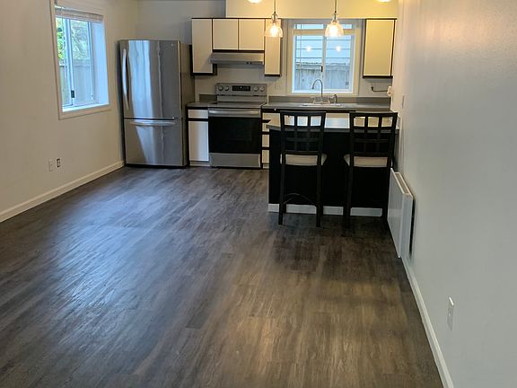 Large studio 440 sq feet in 5 Plex.. heating and electricity included in rent! Designated off street parking space is provided with no extra charge. Unit is on the ground floor. New luxury vinyl plank flooring. Open floor plan with living room, dining room and large kitchen. Lots of storage in kitchen with extra pantry. New Stainless Steel Dishwasher, New full size self cleaning convection oven. Newer full size refrigerator. New beautifully remodeled bathroom with walk in shower upgrade glass doors. Newer style bldg. Electric forced air wall heaters, good for furniture placement. Stacked Maytag washer/ dryer in unit. Large double closet with drawers. Tankless hot water heater. A locked large fenced in back yard is accessible to tenants, covered concrete patio is reserved for studio tenants. Walking distance to Greenlake, Theater, Starbucks, Restaurants, Grocery stores, bus transportation, and North Seattle Community Collage. And short drive or walk to light rail at Northgate. W/S/G $60. per person each month. Damage $1500. Rent $1499.00. $400 pet Damage deposit , no monthly pet rental fee. Studio is available end of March 20th Address is 8843 Stone ave N. Seattle. 98103 Apt #5. All damage deposits are refundable if no damage is done. All Applicants must have a credit score of 650 or above. No collections or evictions. A "Zillow" or "Landlord protection service" application required, paid by the applicant. A link can be provided for you. Tours available Fridays And Saturdays 12:00-6:00, & Sun 1:30-4:30 w/s/g fee is 60.00 per person. no extra charge for off street parking. No smoking inside. 12 Months term. 1439.00 deposit and pet deposit of 400.00 all damage deposits are refundable if no damage is done and unit is returned cleaned and to the state it was when rented. Cleaning fee charged out of damage deposit if tenant doesn't leave unit clean.