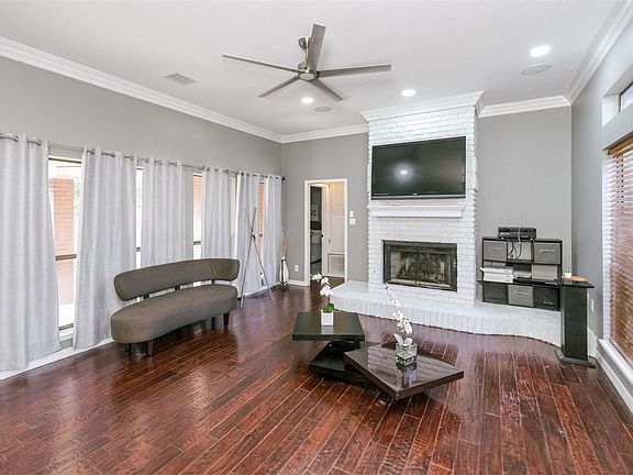 Impeccably remodeled homeLarge backyardSpacious covered patioStylish walk-in showerTranquil master suiteLuxurious soaking tubStunning painted brick fireplace