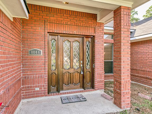 Welcome to this impeccably remodeled home, designed with a sleek and modern gray-and-white palette. The bright, open living room invites you in with its stunning painted brick fireplace and hearth, ready for cozy evenings. Experience superior sound quality with the integrated surround sound system, and enjoy the elegant, wood-like flooring that flows throughout the main areas. The tranquil master suite is your private escape, featuring a luxurious soaking tub, a stylish walk-in shower, and a modern LED mirror. For your convenience, all appliances—including the washer and dryer—will remain with the home. Outdoor living is a dream with the spacious, covered patio and large backyard, both offering plenty of shade for entertaining family and friends. This home is conveniently nestled in the desirable Southern Hills neighborhood, offering the perfect blend of modern comfort and a convenient lifestyle